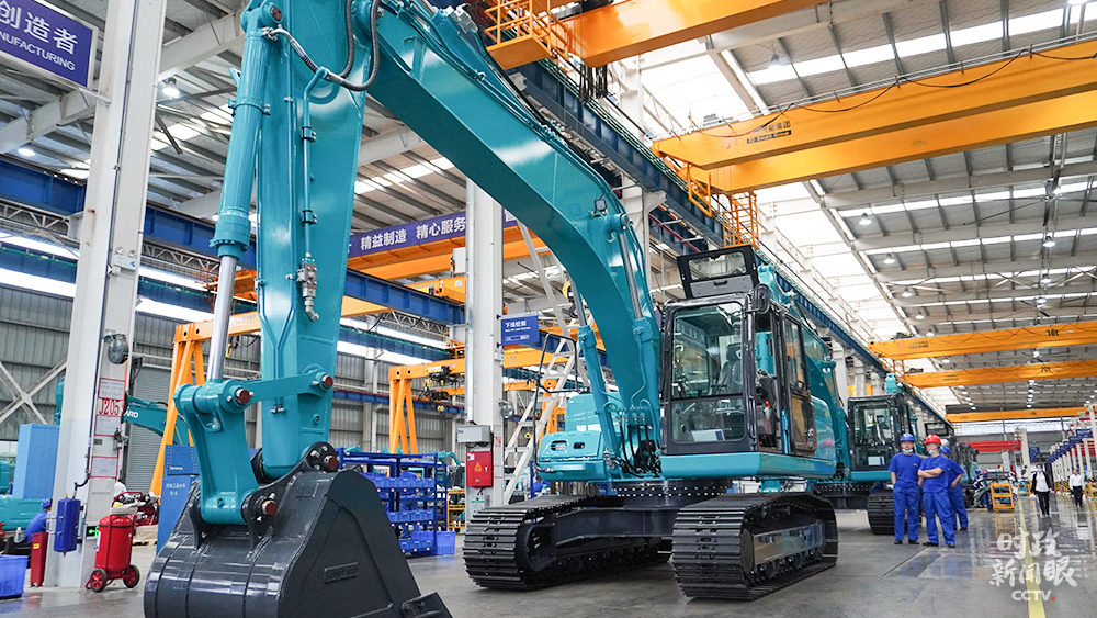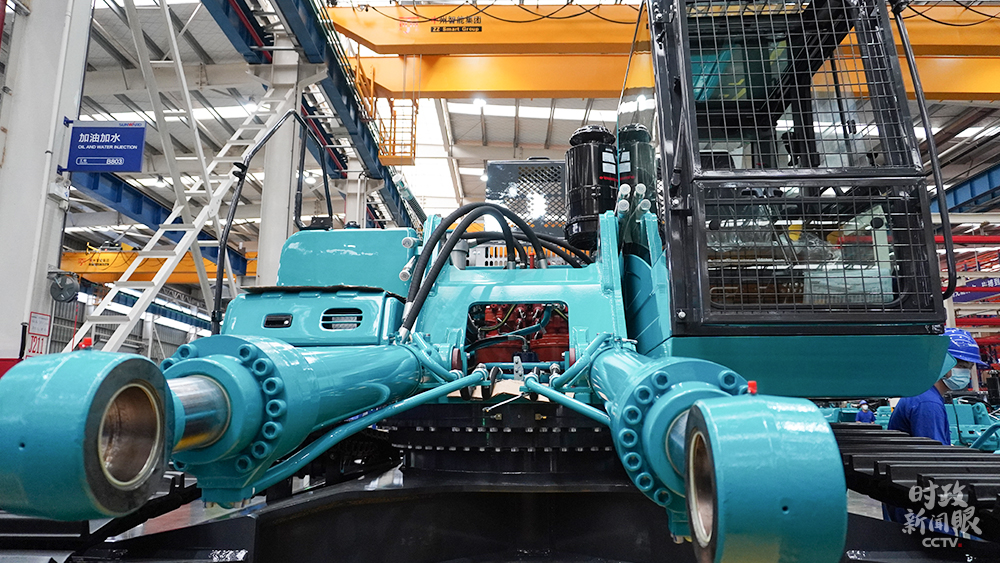 △山河智能生產車間組裝的大型挖掘機,能適應多種複雜地形作業。(總枱央視記者郭曉龍拍攝)