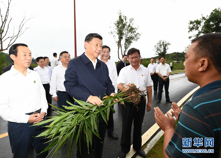 9月16日至18日,中共中央總書記、國家主席、中央軍委主席習近平在湖南考察。這是16日下午,習近平在郴州市汝城縣文明瑤族鄉沙洲瑤族村沙洲現代農旅示範基地,瞭解扶貧產業發展和增收情況。新華社記者 謝環馳 攝
