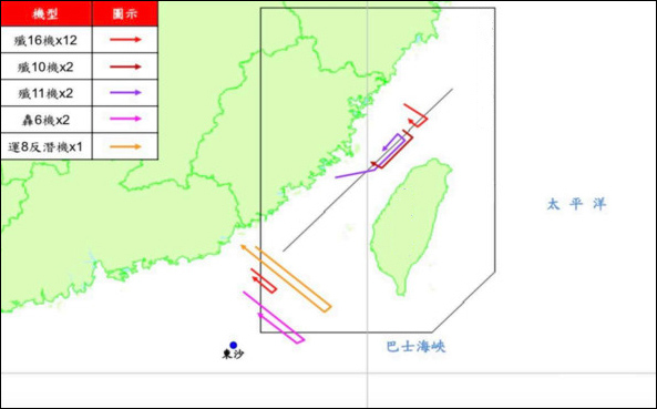 繼昨日18架後,今日又有19架解放軍戰機在台海附近演練