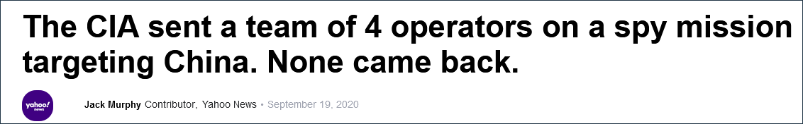 “雅虎新聞網”19日爆料:在針對中國的一項間諜任務中,CIA四名特工無人生還