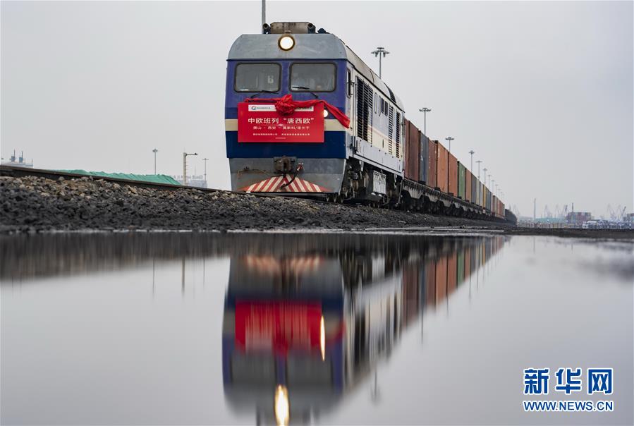 “唐西歐”中歐班列從河北唐山曹妃甸港通用碼頭鐵路場站駛出(8月26日攝)。新華社記者楊世堯攝