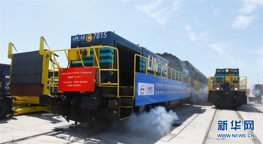 “長安號”中歐班列抵達比利時根特北海港碼頭(2019年7月4日攝)。新華社記者 潘革平 攝