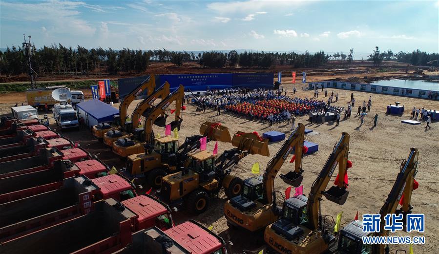 海南自由貿易港建設項目(第三批)集中開工儀式現場(9月13日攝,無人機照片)。新華社記者 楊冠宇 攝