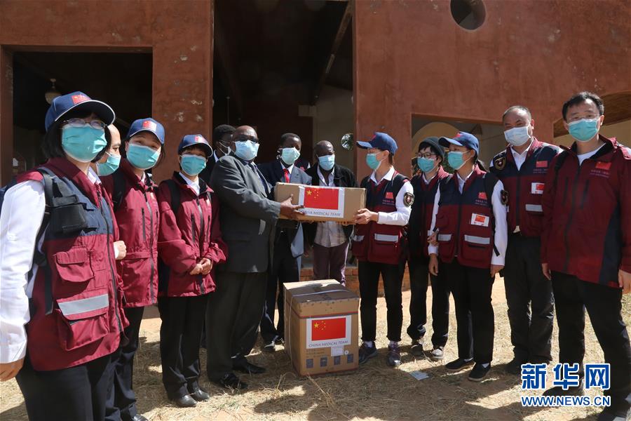在津巴布韋中馬紹納蘭省的姆武爾維醫院,中國抗疫醫療專家組為當地醫療機構捐贈醫療物資(5月19日攝)。新華社記者 張玉亮 攝