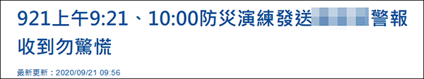 21日台灣地區發送防災警報,台“中央社”提醒島內民眾不要驚慌