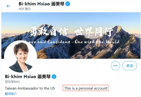 蕭美琴很清楚這兩個字的重量和意味,她十分清楚自己承受不起,所以在推特的個人簡介後面,還清楚地標註了“這是個人賬號”。