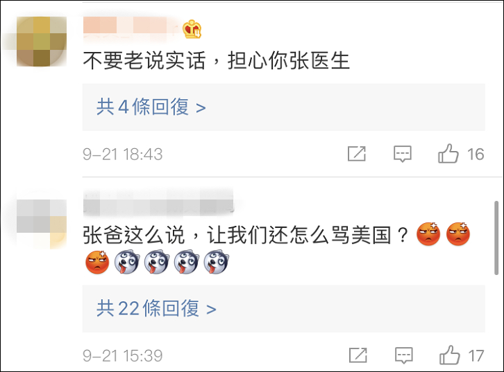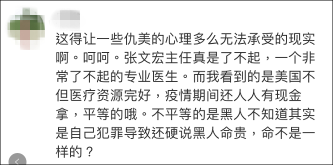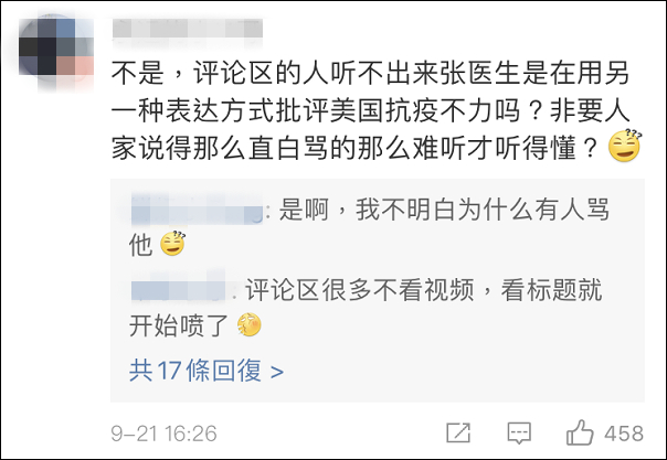 “聽不出來張醫生是在用另一種表達方式批評美國抗疫不力嗎?”“這樣的話是怎麼被曲解成別的意思的,無法理解。”