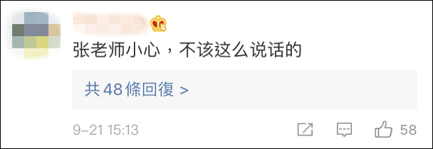 於是有人陰陽怪氣地評論:“這得讓一些仇美的心理多麼無法承受”。還有人“提醒”道:“張老師小心,不該這麼説話的”、“不要老説實話,擔心你張醫生”……