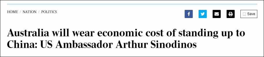 由於澳方近期夥同美國、印度,不斷向中方無理施壓,中澳關係日趨緊張。但非常遺憾的是,無論是《澳大利亞人報》還是西諾迪諾斯都明裏暗裏地指責中國在“施壓”。