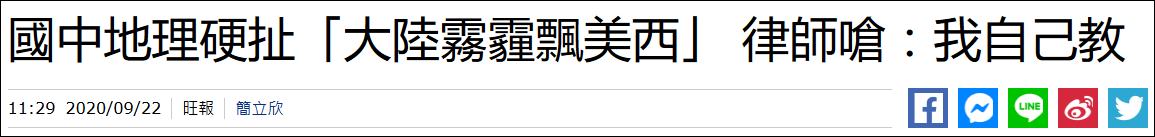 9月21日,台灣律師蘇逸修在臉書和微博上同步發文稱,他發現自己女兒所用的地理講義上,存有大量污衊抹黑大陸的“洗腦內容”,多處對大陸經濟發展情況的描述嚴重失實。