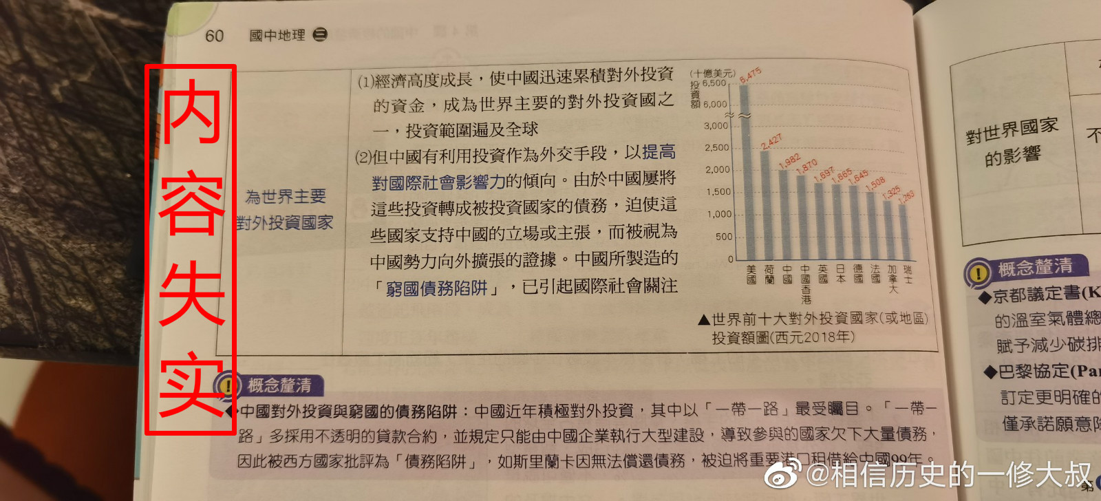 【文/觀察者網 熊超然】近些年以來,台灣島內學生的思想心智,不斷被民進黨當局所修改的教科書所“毒害”。一些科目的教科書內容,不只是“去中國化”,甚至還極盡污衊造謠大陸之能事。