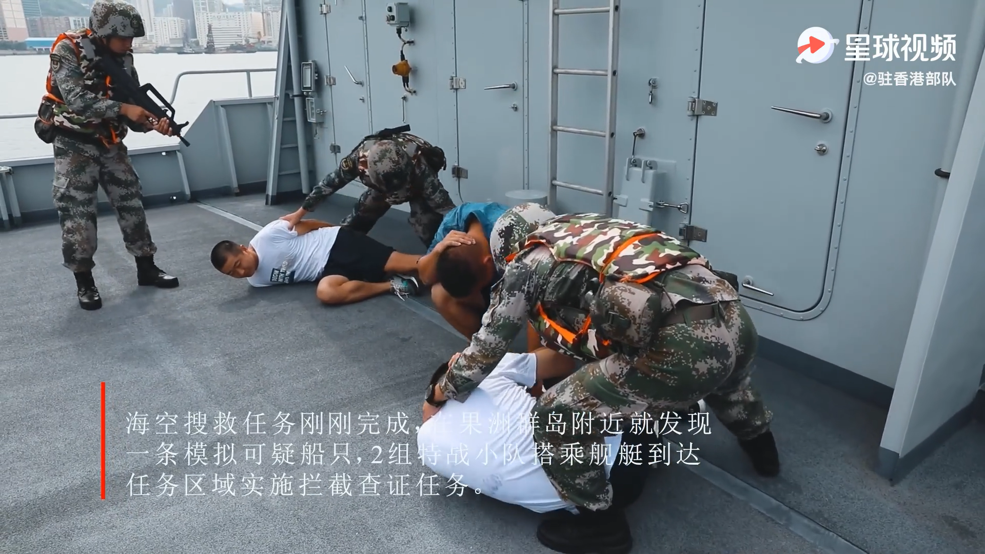 駐港部隊模擬攔截可疑船隻(視頻截圖)