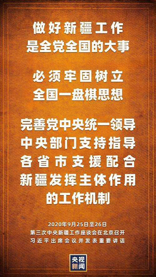 第三次中央新疆工作座談會9月25日至26日在北京召開。中共中央總書記、國家主席、中央軍委主席習近平出席會議並發表重要講話。