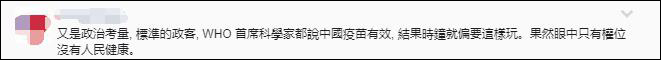 還有網友稱,陳時中此舉,就是在拿防疫來搞政治。“真令人失望。”“果然眼中只有權位,沒有人民健康。”