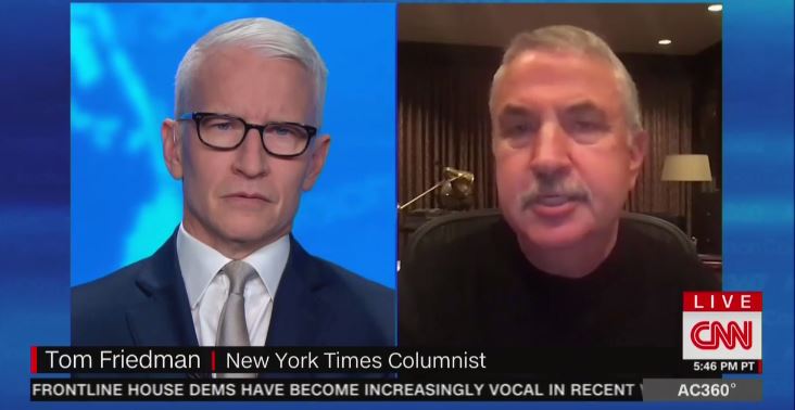 據《國會山報》9月25日報道,弗裏德曼在前一天接受了美國有線電視新聞網(CNN)主播安德森·庫珀(Anderson Cooper)的採訪。節目中,兩人説到了特朗普9月22日在白宮記者會上,沒有承諾敗選後和平移交權力一事。