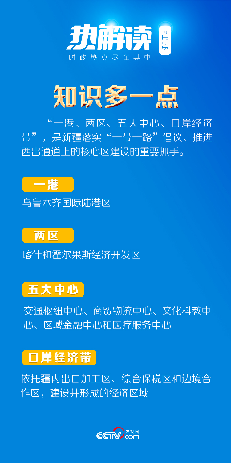 ——依託“一港、兩區、五大中心、口岸經濟帶”,新疆着力打造向西開放的橋頭堡。