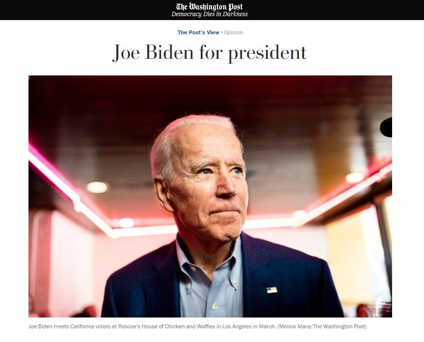《華盛頓郵報》開篇即提到美國大選中的一種論調,“為了讓美國近代最糟糕總統下台,選民們願意將票投給任何人!”但隨即又表示,選民們並不需要如此拉低選擇標準,因為特朗普的對手拜登的知識與經驗“完全足以應對美國總統未來4年所面臨的嚴峻挑戰”。