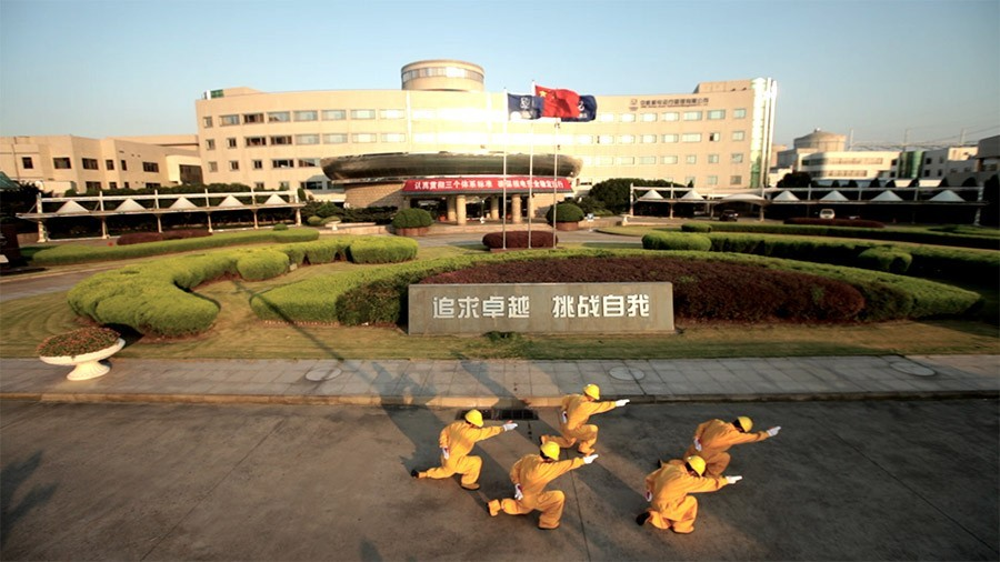 接着,我們又來到一個“影院級”放映廳,播放的是《核電小蘋果》MV。其中五名工作人員混搭車間工作服,進行生動的舞曲演繹。同時鏡頭的調度切換,以及加工製作也都十分專業。而最重要的是,視頻藉着歌曲宣傳了企業文化、核電科普和節能減排,意義非凡。