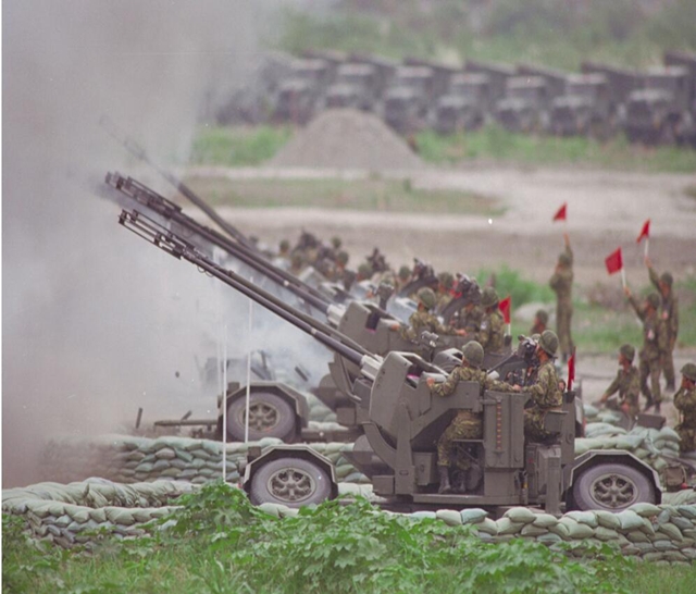 1996年台空軍防空炮兵戰鬥序列:雙35毫米“厄利孔”/“天空哨兵”高炮營(301、302、303、304營);“捷羚”/T-82高炮營(501、502營,換裝中);“博福斯”40毫米高炮/M55高射機槍混編營(206、207、208、213、216營)。