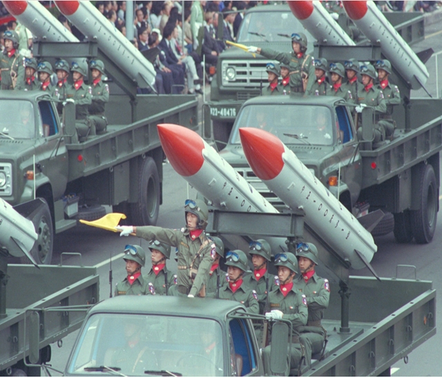 相比正處在換裝期的戰機部隊,台軍的防空部隊在台海危機高峯時期的實力則更為青黃不接。此時隸屬於台陸軍飛彈指揮部的防空導彈部隊總實力是:3個飛彈羣,6個飛彈營,總計6個“勝利女神—大力士”防空導彈連,2個“天弓一”防空導彈連和18個第二代“霍克”式防空導彈連。