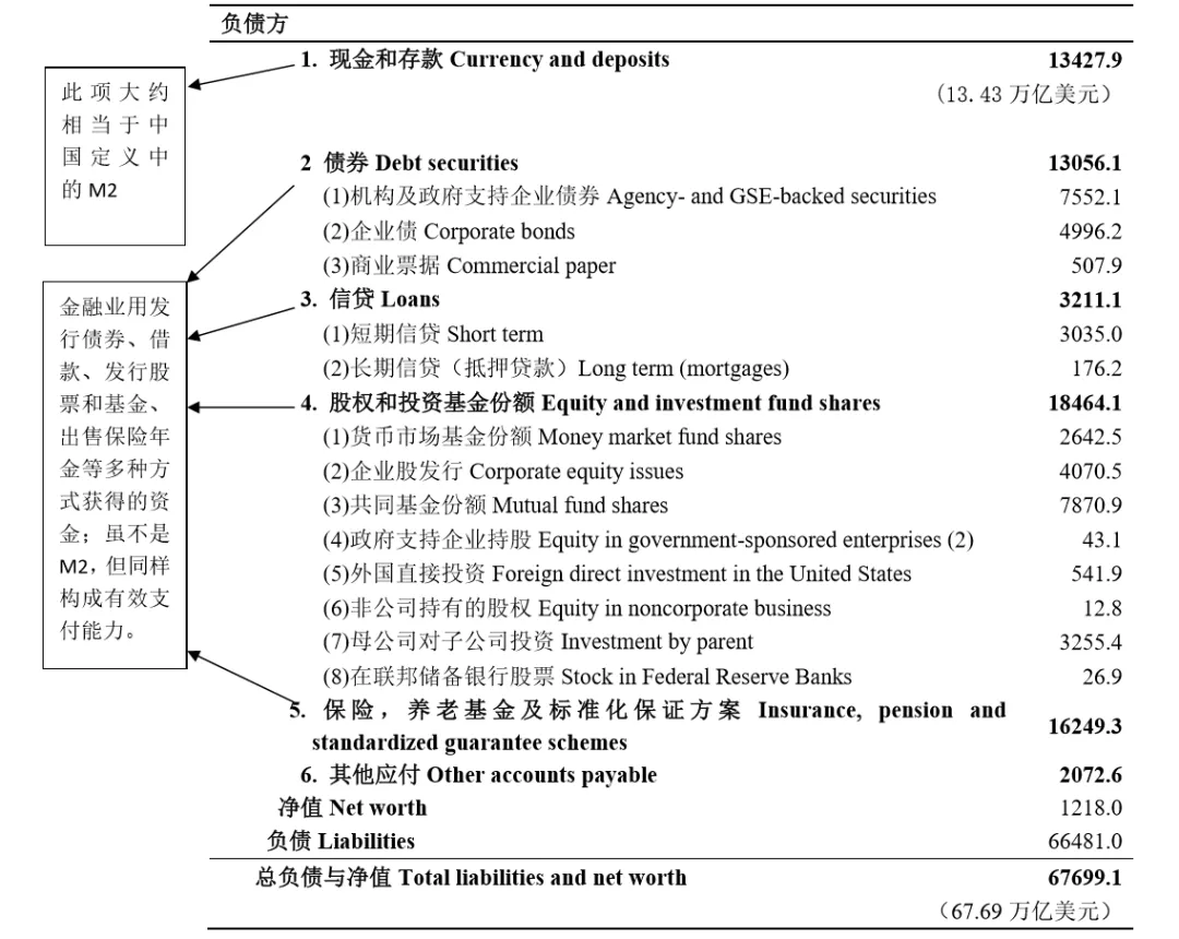 **第三,貨幣計量指標的失靈,**即廣義貨幣M2這個貨幣供應量的主要計量指標已經不再能夠衡量當代經濟體系中的有效購買力了。眾所周知,M2(現金加存款為主)一直是貨幣當局和經濟學界計量一國貨幣流通量的基本指標,至今鮮有質疑的聲音。實際上,隨着現代貨幣市場的持續高速增長,在形成有效購買力的金融工具中,儲蓄存款及現金已經只佔一小部分,大部分來自債券、股權、信託、保險、資管及其它各種形式的非銀行資金體系的供求。這些資本市場的新型融資工具在定義上不屬於M2,但從形成有效購買力這一功能而言,它們與M2並無實質區別;而且,在現實中,這些資本市場融資工具的放大能力比M2還要厲害!因此,在當代實體產業經濟與虛擬資產經濟並存的現實經濟體系中,計量全社會貨幣的總量,不僅要看M2,更要看各類資本市場的融資工具。