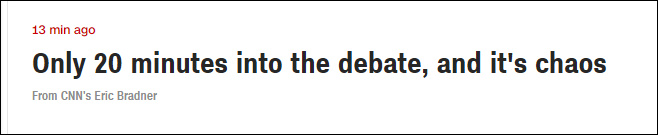今天(30日)上午,美國大選首場辯論開始沒多久,就已經朝着不可控制的局面駛去了。CNN吐槽,“才開始20分鐘,就已經陷入混亂。”