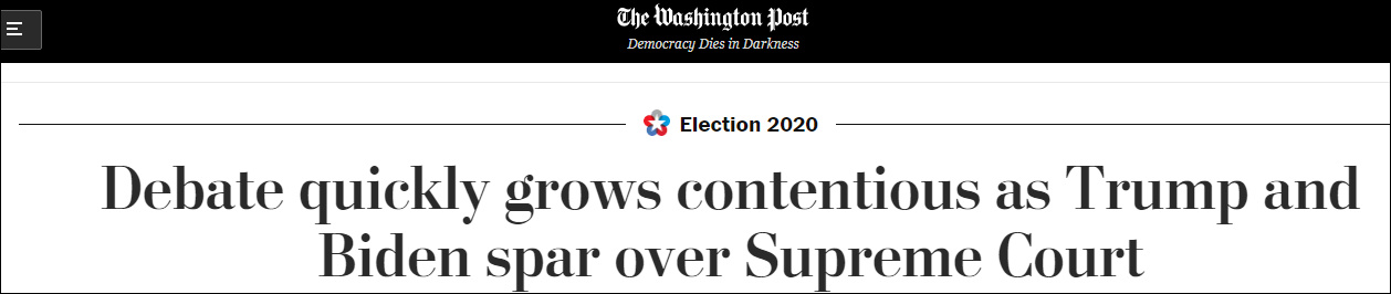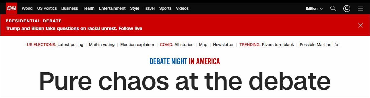 主持人華萊士總是要及時“踩剎車”,才能勉強拉住各説各話的兩人,得以進入下一個議題。除了CNN,很多美國媒體都已經聚焦了此次辯論混亂。《華盛頓郵報》説:“隨着特朗普和拜登在最高法院問題上爭吵不休,辯論迅速升温。”