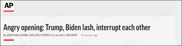 美聯社以《憤怒的開場:特朗普、拜登互相攻擊、打斷對方》為題,注意到在辯論中,特朗普頻繁打斷拜登,拜登則稱特朗普是小丑。