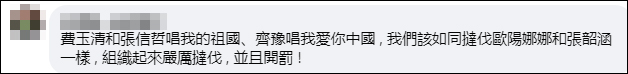 甚至,還有一部分人言辭激烈地宣稱,所有唱這些祖國歌曲的台灣藝人都應該受到嚴厲撻伐和處罰。