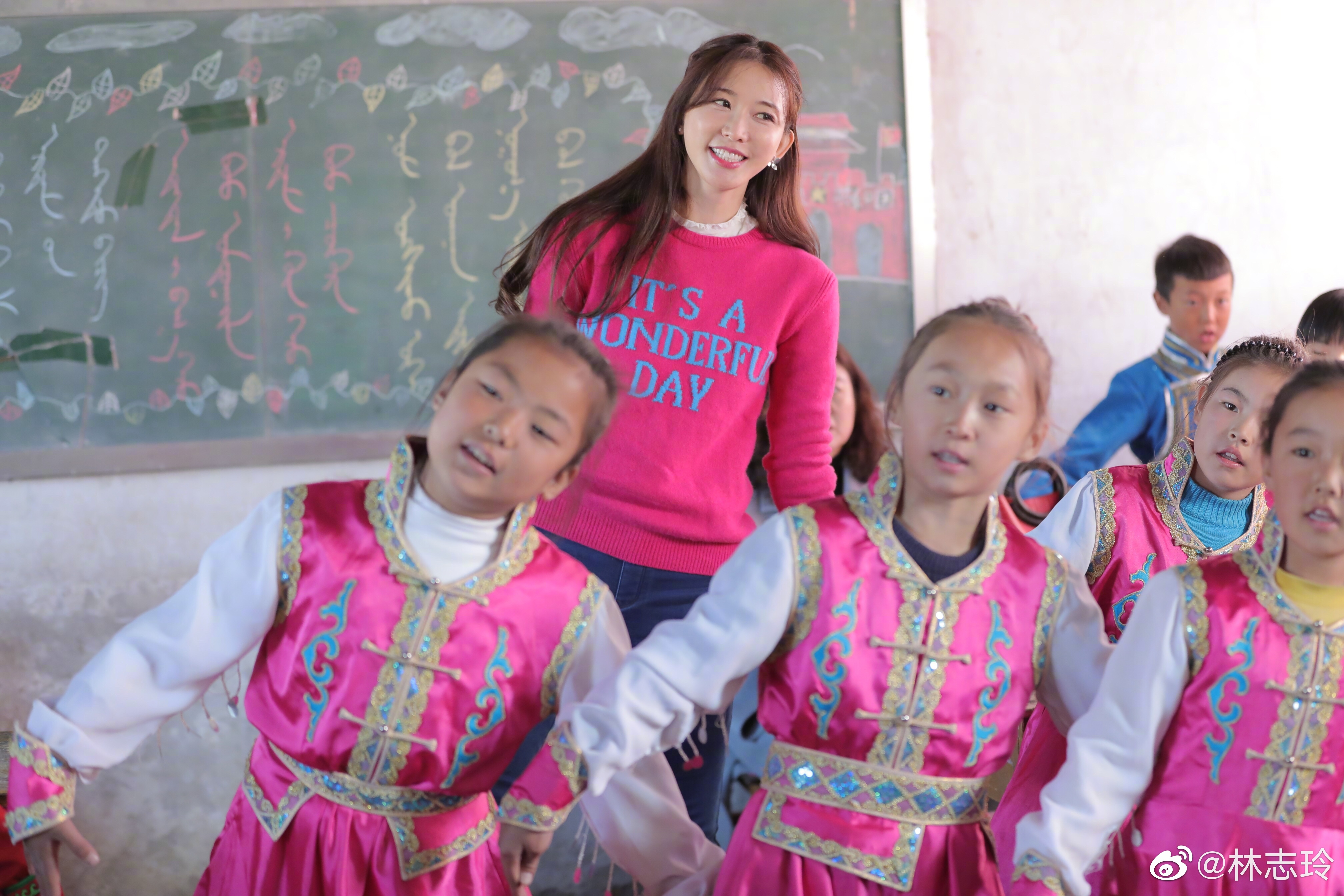 去年10月22日,林志玲在個人微博上發文稱,自己和內蒙古通遼市庫倫旗茫汗蘇木中心校的孩子們見了面,並和孩子們一起畫T恤、拋綵球、舞方巾、唱歌,開展了豐富多彩的活動。