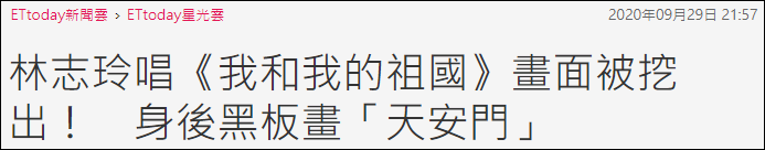 從9月29日晚間到30日上午,眾多台媒都紛紛報道了此事,《自由時報》、“三立新聞網”等媒體在標題中更是反覆提及“林志玲被挖出”、“林志玲高歌《我和我的祖國》”、“身後黑板畫天安門”等字眼。