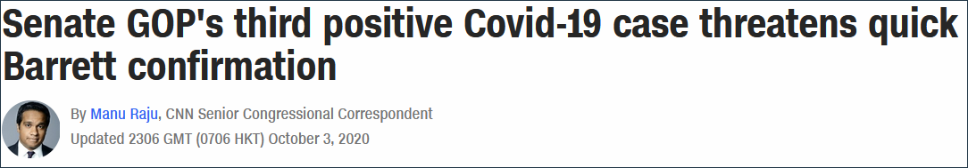 三名共和黨參議員的相繼確診,也對將於本月22日進行的艾米·巴雷特(Amy Barret)最高法院大法官提名投票帶來新的不確定性。