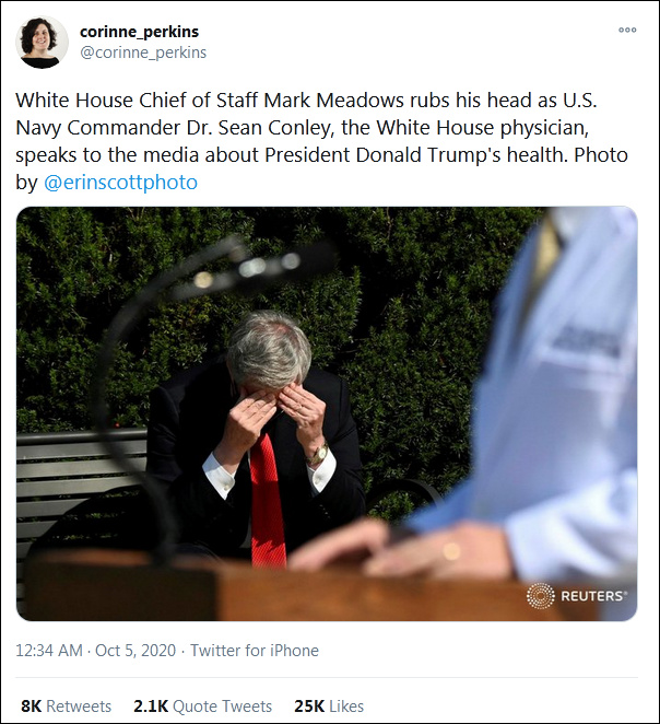 與白宮醫生口徑不一惹怒特朗普?白宮幕僚長這張照片火了