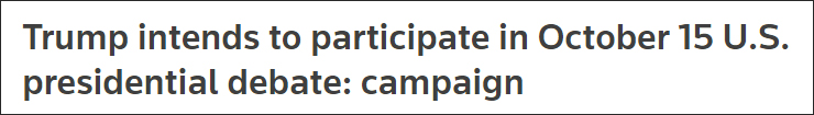 至於特朗普在辯論中頻頻搶話的問題,美媒9月30日透露,美國總統辯論委員會表示,會對剩餘的辯論進行額外結構性調整,以確保議題討論“更加有序”。