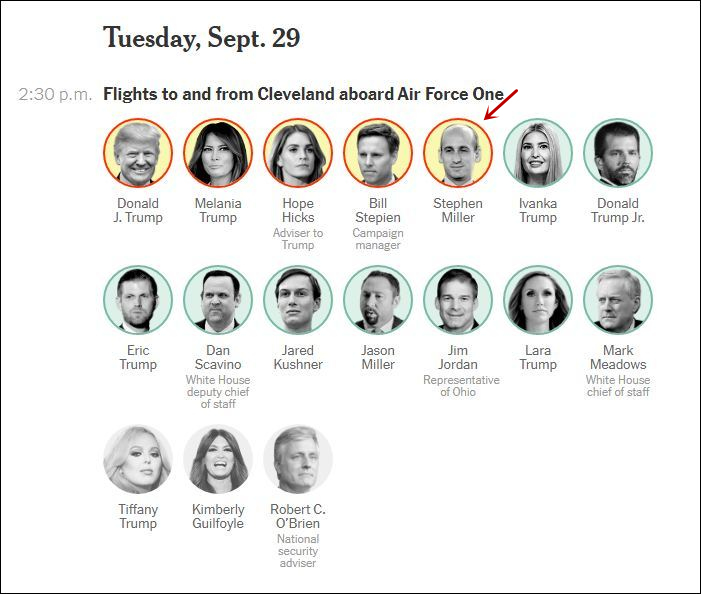 9月29日,米勒陪同特朗普乘坐空軍一號往返克利夫蘭。