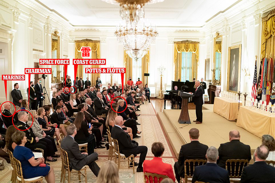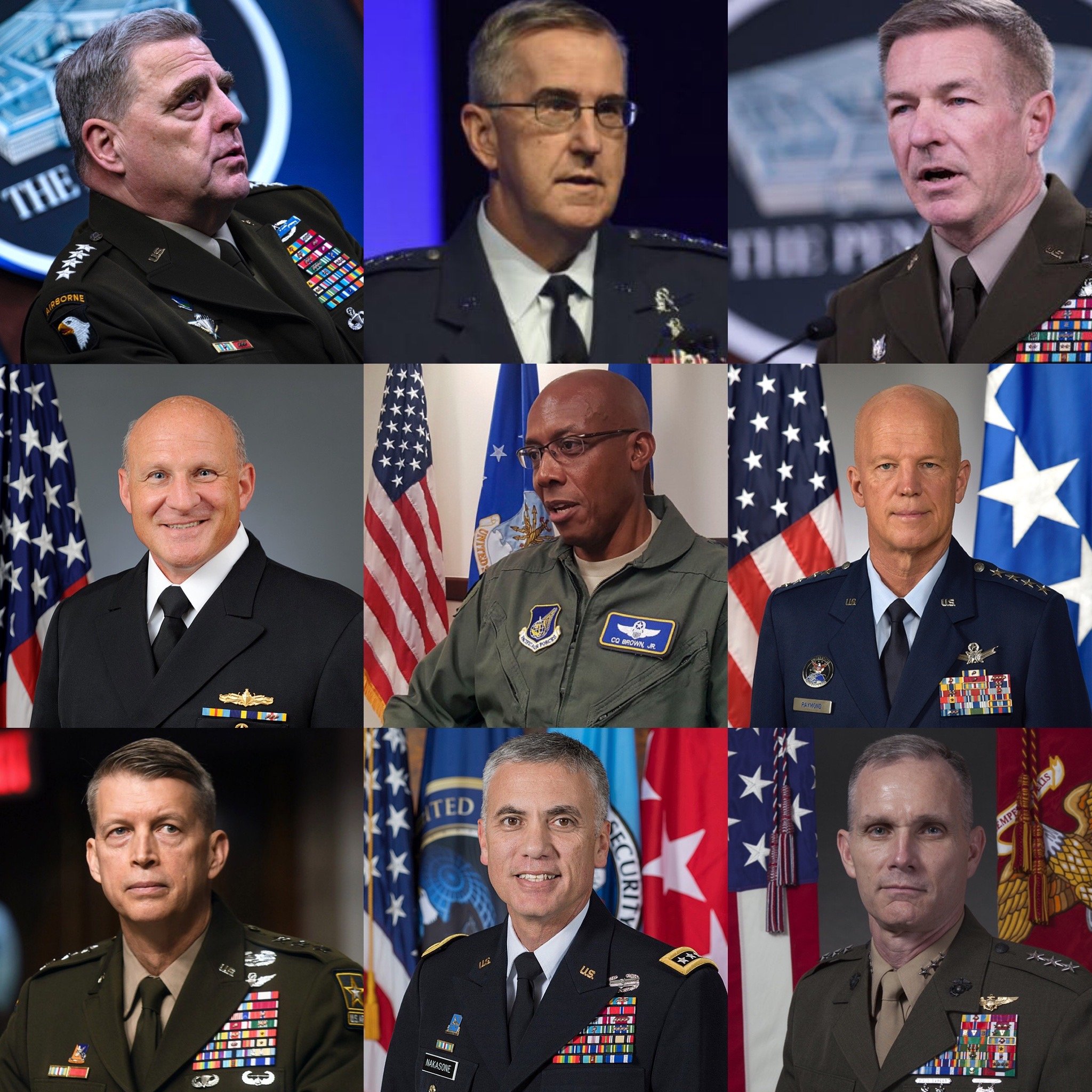 陸軍參謀長麥康維爾、海軍作戰部長吉爾迪、空軍參謀長布朗、網絡戰司令部司令中曾根、太空軍司令雷蒙德、國民警衞局局長霍坎森以及海軍陸戰隊副指揮官托馬斯。