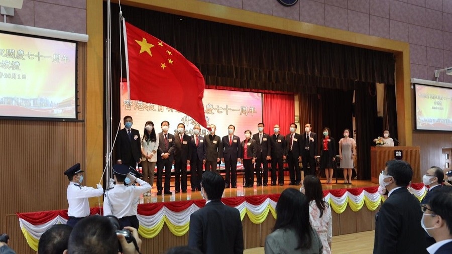 10月1日,香港教育界舉行慶祝國慶七十一週年升旗禮 圖自“橙新聞”