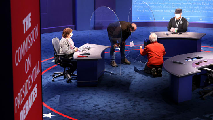 這既反映在現場的佈置,也反映在兩位候選人的辯論策略上。考慮到特朗普與多名競選顧問確診,主辦方總統選舉委員會強化了防疫措施,要求兩位副總統候選人今晚在台上至少保持3.6米的社交距離,還特別在他們之間分別樹立玻璃隔板。