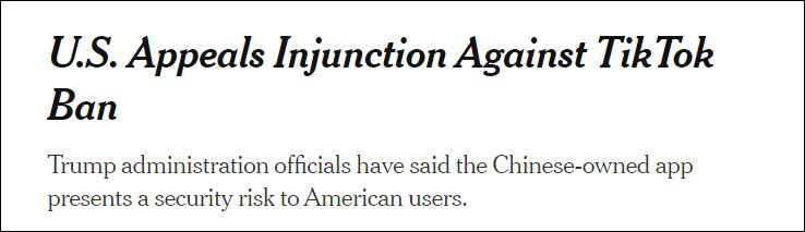 (觀察者網訊)上月27日,即將生效“TikTok下架禁令”被美國一家法院緊急叫停。但美國政府不肯罷休,現在已正式對此啓動上訴程序。