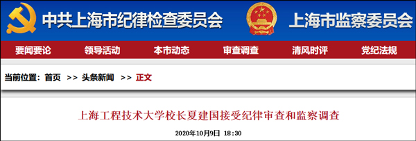 上海工程技術大學校長夏建國接受紀律審查和監察調查