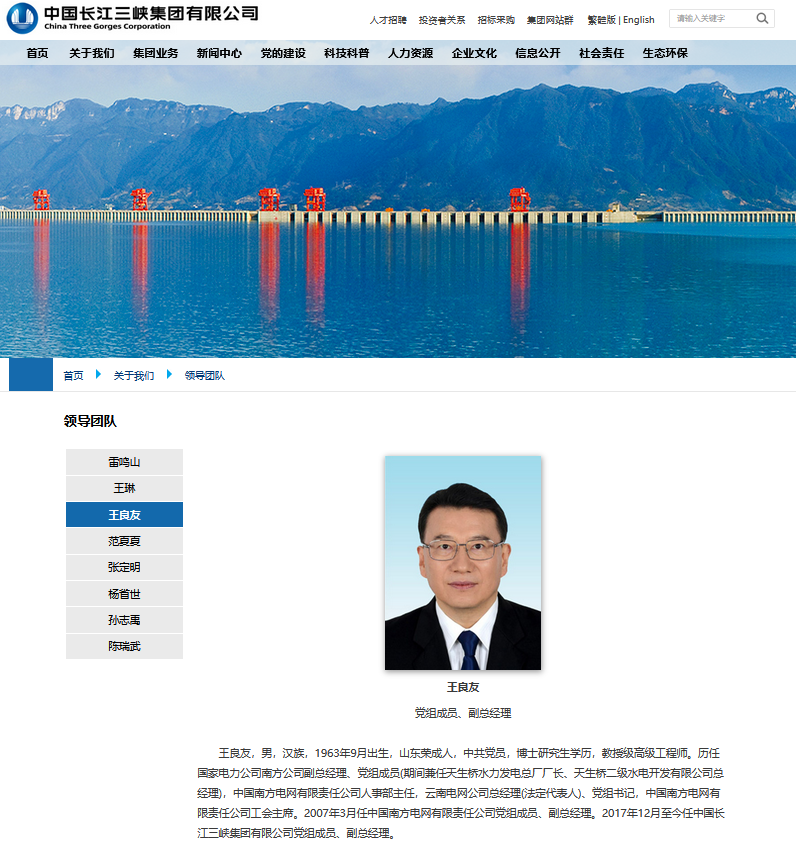 另據中國三峽集團有限公司官網顯示,目前,王良友擔任該集團黨組成員、副總經理。