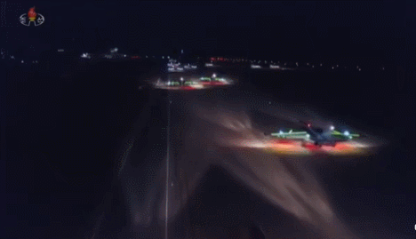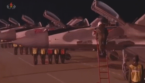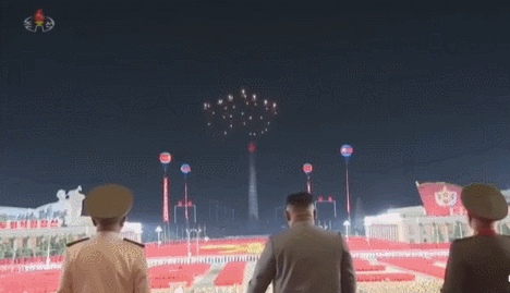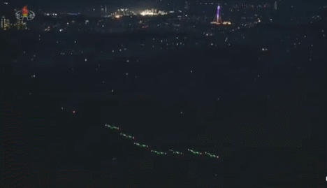 人民軍飛行員的夜航密集編隊通場也不得不提。無論是7架整齊通過金日成廣場的夜航米格-29機隊,還是擺出錘筆鐮黨徽圖案的安-2機隊,還是蘇-25機隊,都表現出了極強的視覺效果,也體現出朝鮮人民軍飛行員的飛行水平。