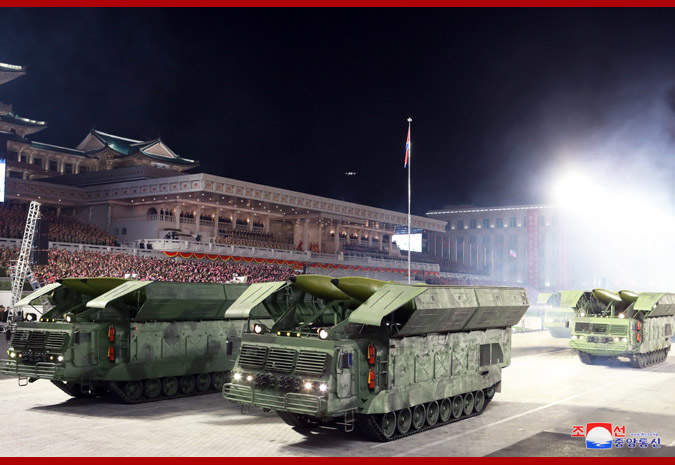 在本次閲兵中,朝鮮人民軍展示了多種戰略武器,包括一種基於全新的11軸特車機動式洲際彈道導彈、火星-15、火星-12、北極星-4A潛射彈道導彈,再次向外界重申了自己的核能力與核地位。此外,朝鮮還展示了新坦克、輪式導彈發射車、履帶式自行火炮和火箭炮在內的新機械化載具,以及一系列反映金正恩時代國防建設成果的先進精確打擊兵器,彰顯了金正恩新時代強盛朝鮮的雄偉新氣象。
