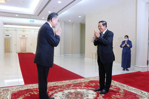 洪森請王毅轉達對中國領導人的誠摯問候和良好祝願。洪森表示,此次中國外長把柬作為東南亞之行首站,顯示了柬中之間緊密深入的全面戰略合作伙伴關係。柬中一貫相互支持、相互依賴、相互幫助,是真正的好朋友。柬方高度讚賞並感謝中方為柬埔寨應對疫情和推動經濟社會發展給予的大力幫助。中國抗擊疫情取得巨大成就,為全球抗疫樹立了標杆。柬方堅定致力於加強柬中全面戰略合作伙伴關係,將在涉及中方核心利益問題上繼續堅定支持中方,願同中方一道深化各領域互利合作。柬在國際事務中將堅持原則,堅定維護地區和國際和平穩定,反對強權政治和霸凌行徑。