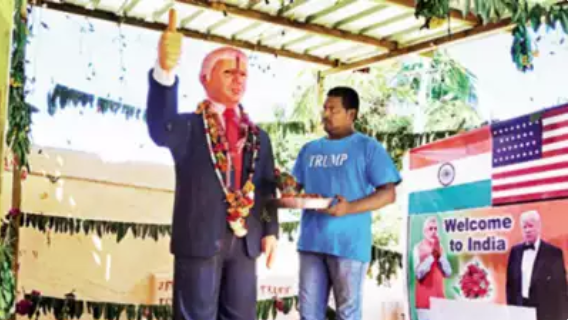 他將特朗普的照片貼在家裏的牆壁上,把自己的家稱為“特朗普神廟”,並穿上印有偶像照片的T恤。無論走到哪裏,克里希納都攜帶着特朗普的裱框照片。去年,他還花費了140萬盧比(約合人民幣12.88萬元)建造了一座六英尺高的特朗普雕像。
