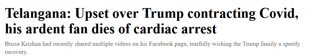 聽聞特朗普感染新冠,印度鐵粉餓了四天突發心臟病去世