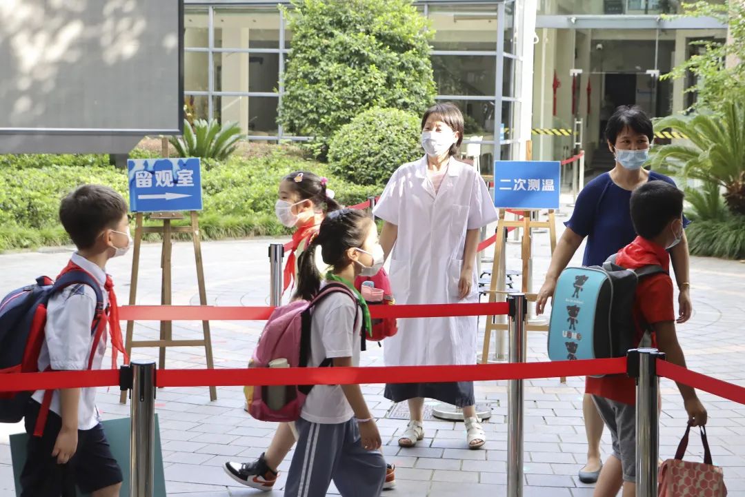 學校落實學生戴口罩、測温等防疫措施。劉歆 攝