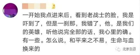 有的網友説:剛開始被老戰士的傷嚇到了,但一瞬間就知道錯了:“他是我們的英雄,和平是用生命與血換來的”。