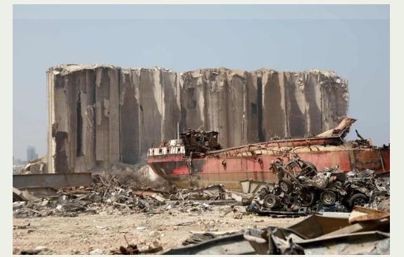 《阿拉伯新聞》官網報道中的圖片,爆炸之後廢墟狀態的貝魯特港口