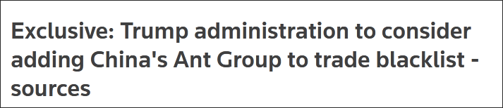 “特朗普政府考慮將螞蟻集團列入貿易黑名單” 路透社報道截圖